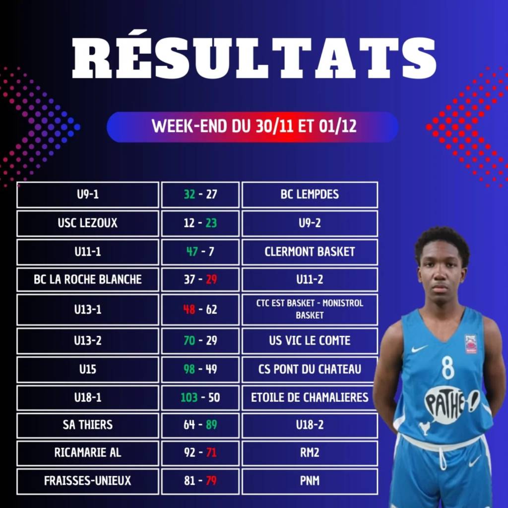 Encore de très bon résultats pour toutes les équipes du Stade Clermontois Basket Auvergne avec sept victoires contre quatre défaites.
