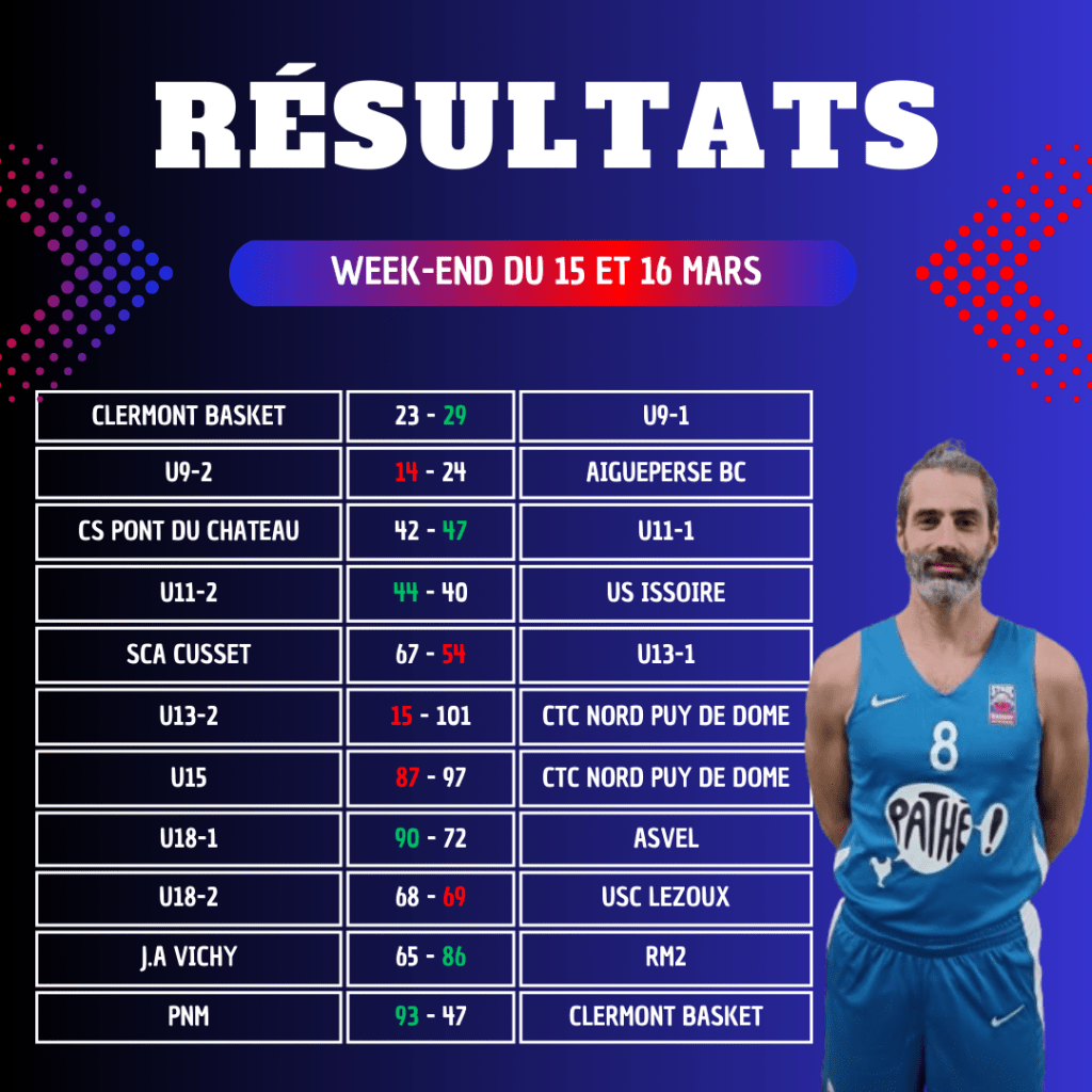 De belles victoires ont été obtenues pour nos équipes U9-1, U11-1, U11-2, U18-1, RM2 et PNM. Une mention spéciale revient à nos U11-2, qui se sont imposés à domicile sur le score de 44-40 après prolongations face à Issoire.