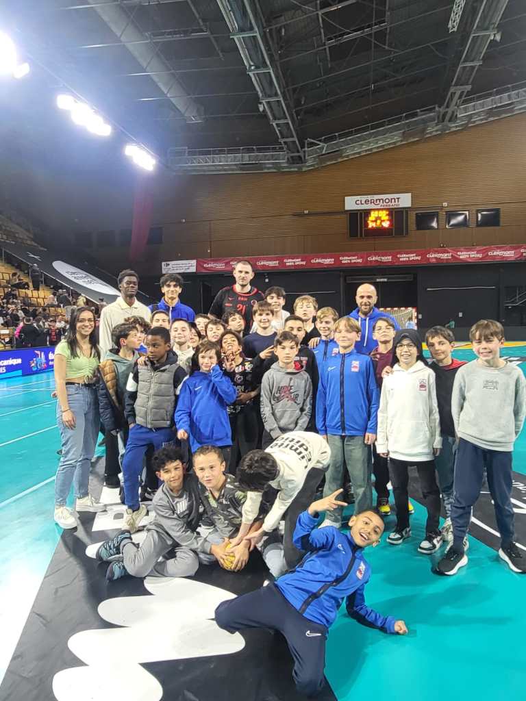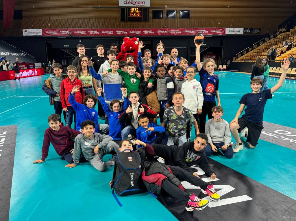 Ce vendredi 28 mars, nos jeunes joueurs U11 et U13, accompagnés de leurs entraîneurs Clara DETRES et Julien SILVA ainsi que deux U18 : Alioune et Valentin, ont eu l’opportunité d’assister à un match de Handball professionnel du Club de Cournon d’Auvergne, dans la grande salle de la Maison des Sports. Une immersion unique qui leur a permis d’observer de près le haut niveau, d’apprécier l’intensité du jeu, la rigueur tactique et l’engagement physique des joueurs professionnels.