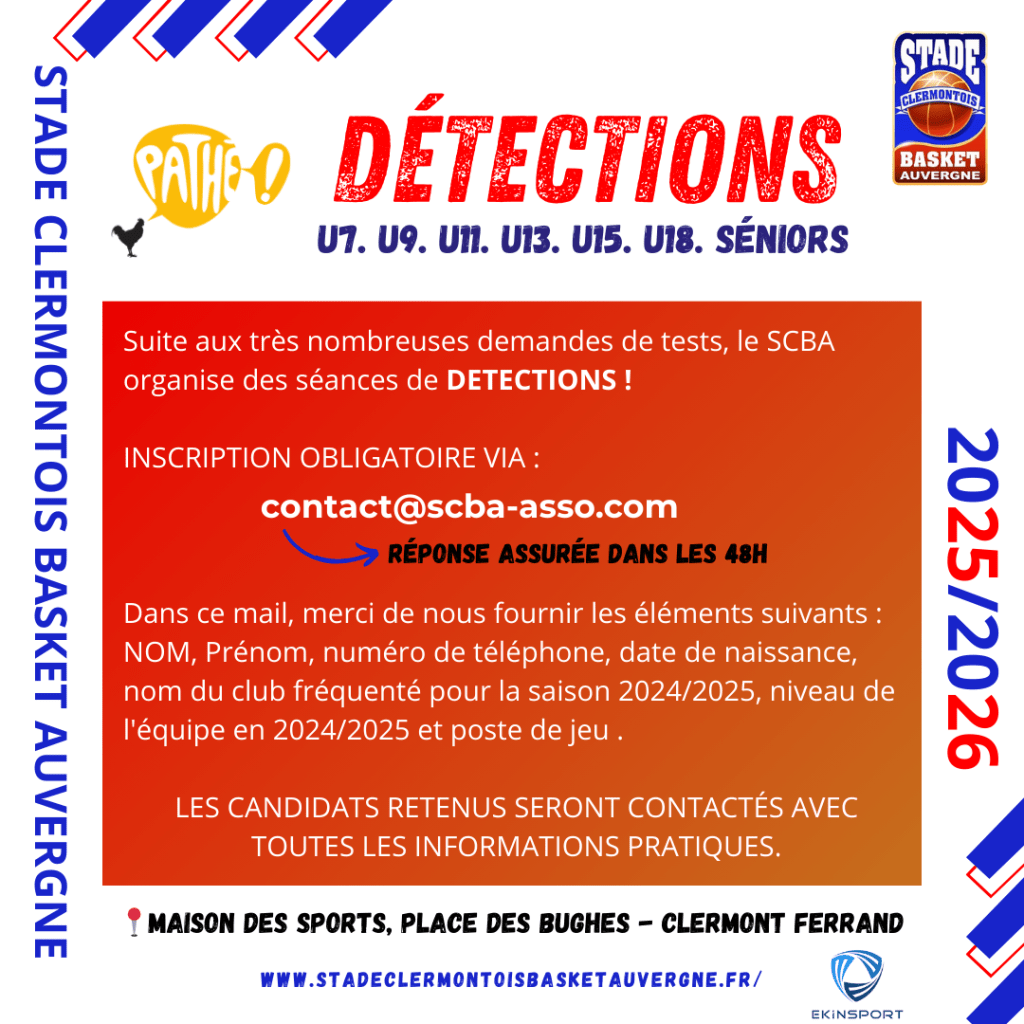 Le Stade Clermontois Basket Auvergne lance sa campagne de détections pour préparer la saison 2025/2026.