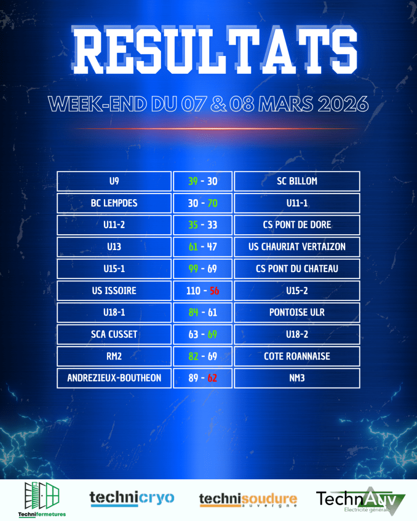 Les U9 se sont distingués par une victoire de 9 points d’avance sur Billom. Les U11-1, en déplacement à Lempdes, ont rapidement pris le contrôle du match, creusant un écart impressionnant de 40 points. De leur côté, les U11-2 ont remporté une rencontre à suspense où rien n’a été joué même à la dernière minute, s’imposant de seulement 2 points face à Pont de Dore, revenu au score in extremis.